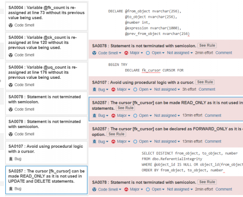 The plugin adds to SonarQube more thanĀ T-SQL 260 code analysis rules and measures for code complexity, technical debt, and code duplications .